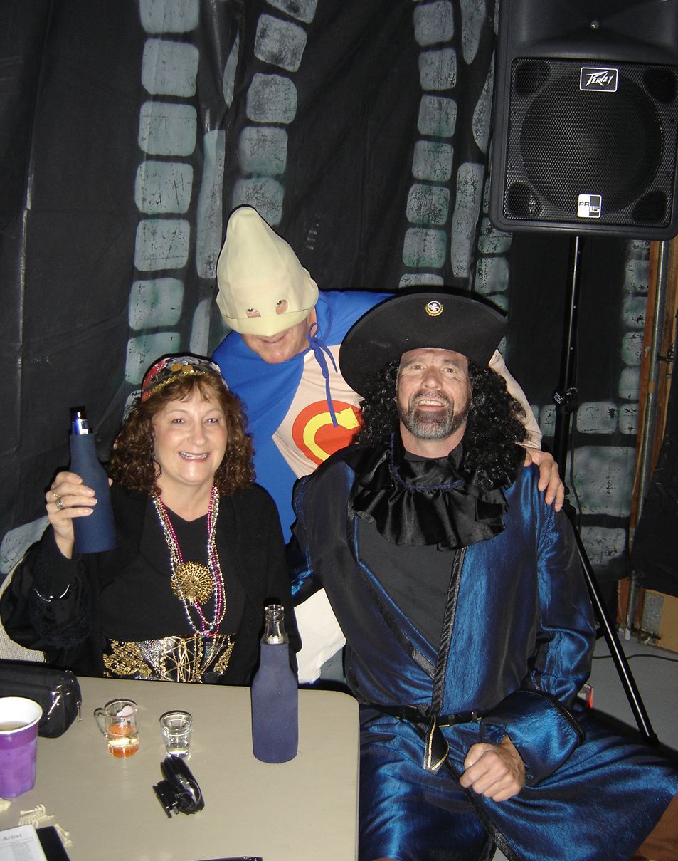 All of the costumes look great!! Skylah is the cutest little witch ever...Love babs wig..You should go auburn all the time!!! Whose condom is that??? And I showed Rich those pumpkins pics and he almost choked to death on his candy!!!