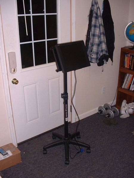 For my actual rig display (I don't use a laptop) it's a 19"LCD with DVI input which mounts on an inverted under-cabinet mount, again using the monoprice wall mount to make it quick release.