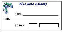Other slips also include the -5 to +5 for key changes (circle choice) and name of singer and STAGE NAME of singer, so as to not confuse kj.