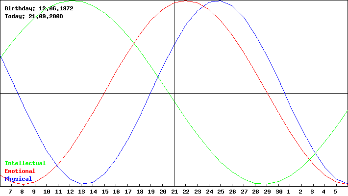 just for kicks I checked out my biorhythm thing in my profile and .. gee.. I'm definitely looking forward to the end of this month lol.. it's when I'm estimated to totally bottom out on Intellict! now isn't that a kick in the head??? LOL..
