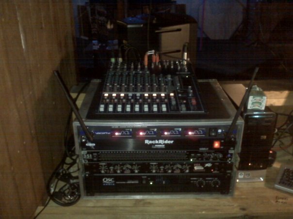 It seems I am always late to threads. Here are some pictures of my rack and set up. The setup picture was from a wedding gig that was both DJ and Karaoke.