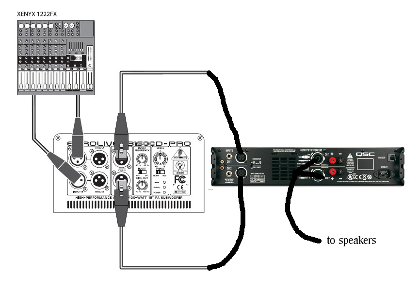 After all the talk about using a subwoofer lately, I decided I'd like to try one. I was told that you can use a powered subwoofer with non powered speakers. Here's what I want to do: Click on Picture to make it bigger. Going from the mixer into the subwoofer, then from the subwoofer to the amp and then from the amp to the satalite speakers. The amp has a crossover built in. Is this correct?