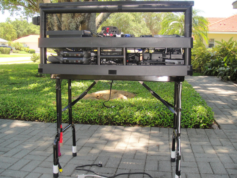 mrmarog wrote: I have a similar table except mine contains 98% of all the plug ins (mics, EFX, A/B switch, cd player, power strips, video converter, hard drive, etc.) with it. Here are a couple pictures of my table. It took me a while to get the layout right and it is way more complicated because a Pioneer CD player is included. It has served me flawlessly for 6-7 years. It is reasonably light at 50 lbs. considering it contains everything except the laptop at that weight. I do have to be careful when carrying it because all the knobs are exposed, but in all the years that has never been a problem.