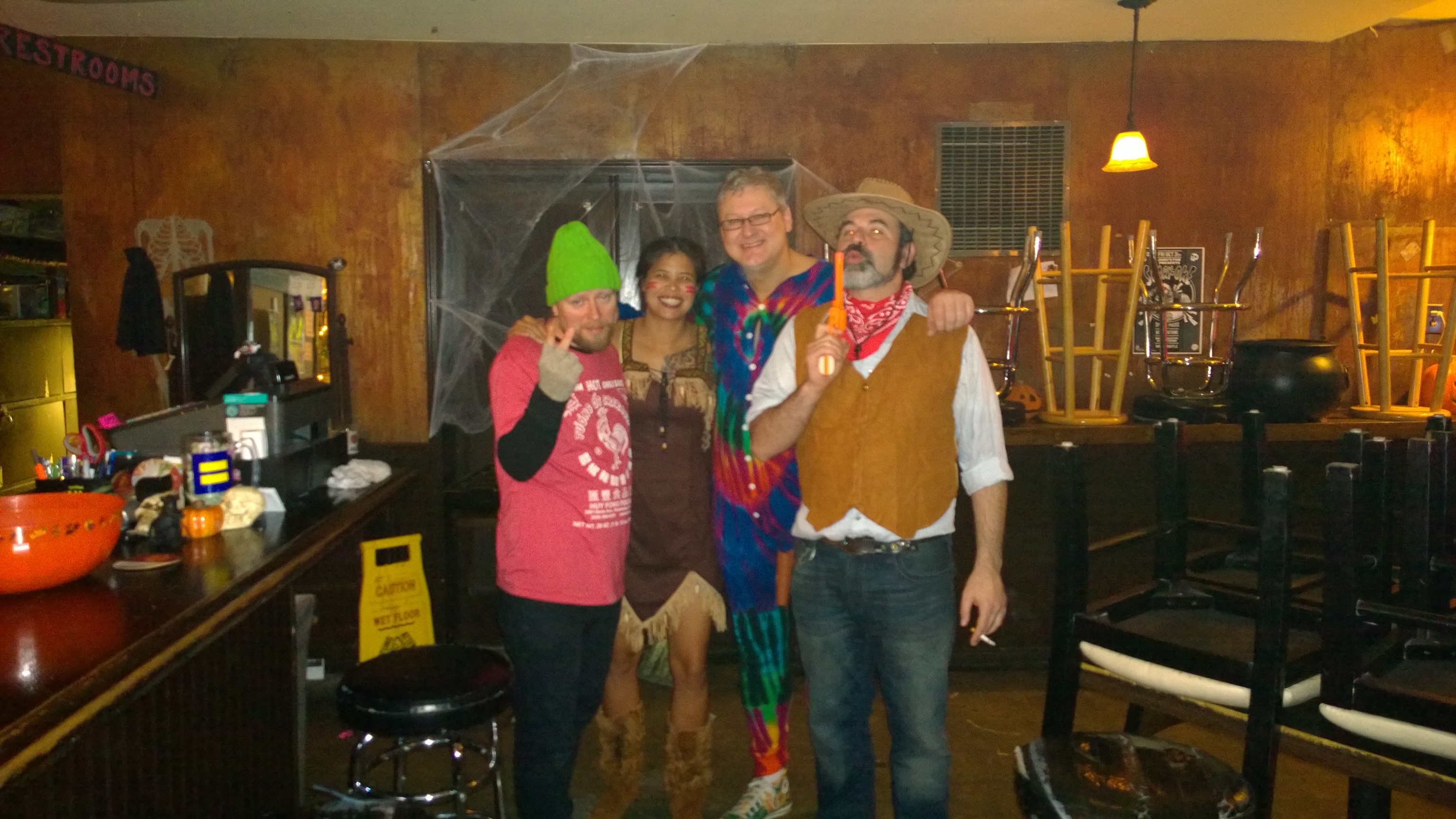 3rd and final Halloween at our downtown Seattle location. New owners are shutting down in December to remodel and will not bringing karaoke back. Somewhat of a bittersweet night since this is out longest running gig at 2 years 9 months. Lots of regulars and new people, 55 deep rotation, and way too much Jaeger.... I am rockin' a onesey... Attachment: