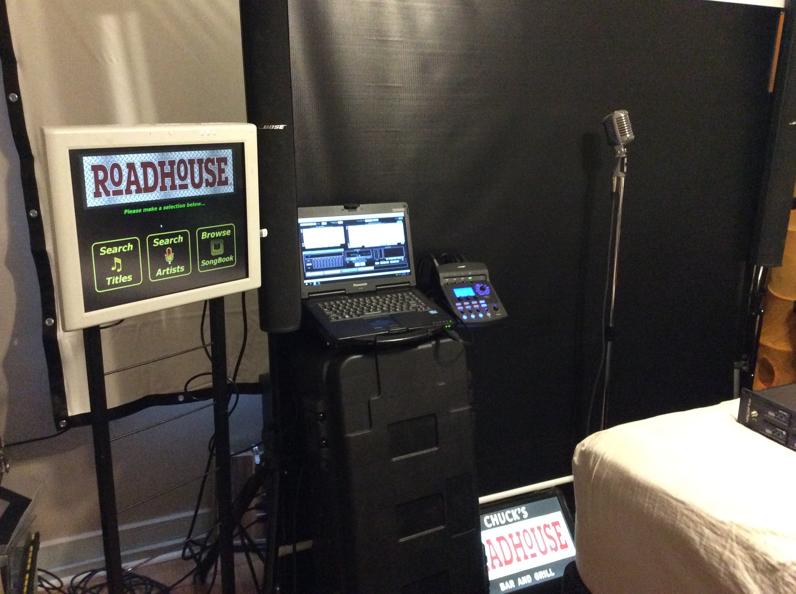 I would love to use one but even using a curtain for a backdrop means 2 tripods and a crossbar to hold it up. More to carry and set up. Now if I had a permanent 7 night a week gig, I would go elaborate and set up a background to make you feel you're on American Idol. Of course with the bar owner's permission.
