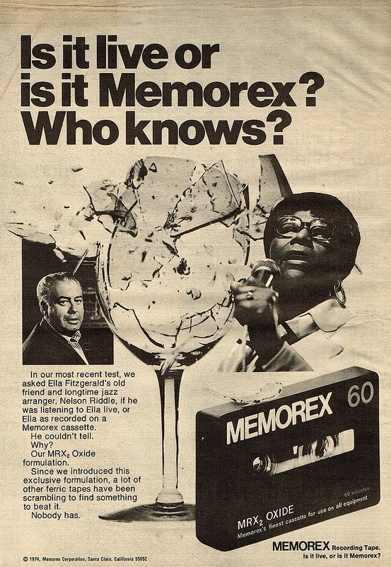 This wasn't the only commercial either. I remember a bunch that had glass shattering. All for Memorex. https://www.youtube.com/watch?v=lhfugTnXJV4They probably stopped using them because they weren't accurate at all and competitors probably sued them. Those singers weren't actually breaking glass. It can be done, but you have to be able to perfectly hit the note that resonates with glass's natural resonance wavelength, and you need a lot of power in your voice and a very thin piece of glass. Ironically, it doesn't prove that Memorex tape is any better than it's competitor's. If a recording breaks glass, it's not a feature of the tape, but more of the stereo's amp and speakers that are playing it back. Recording that special note can be done on any tape, but you need some serious amplification to get it to break glass. I think it's a rather clever name for a karaoke company. It says you have a very powerful and audibly accurate sound system. It also implies that you cater to the best singers (the ones capable of breaking glass). I like it.