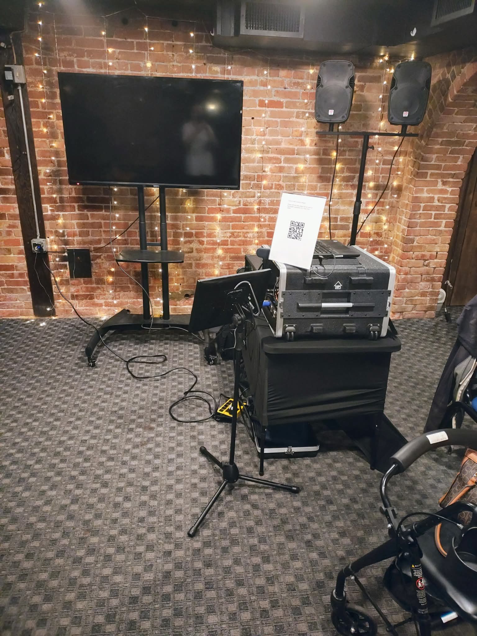 If you can't run this as a business, then you shouldn't be in it. Your setup is very messy and amateurish. At my shows, you won't find one cable on the floor. They are secured and hidden out of view. Speakers are connected wirelessly also, no cables from the mixer to speakers.