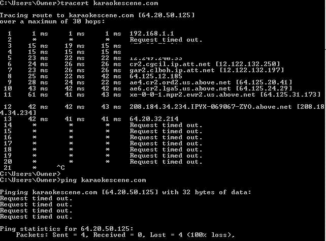 The time now is 9:31 AM (EST/DST). It just took me 10 minutes to get to karaokescene.com. Once in, it seems to be responding with about a 10 to 20 second lag.
