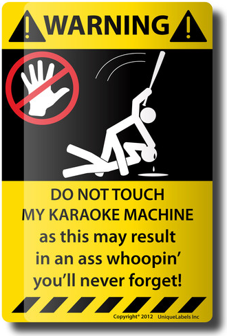 mightywiz wrote: my wife just bought some printable vinyl sheets, gonna have her print it and cut it out and stick it to the side of my rack case.....  Hmmm, printable vinyl sheets. Gonna have to print me some modified signs (I wish. Club manager won't let me): Don’t tap on, or drop my microphone as this may result in an (@$%!) whoopin’ you’ll never forget. Don’t ask me, “When am I up next?” as this may result………. Don’t heckle the singer as this may result…….. Don’t sit in the crowd & try to sing louder than the singer as this may result……… Don’t sing American Pie, Rapper’s Delight, Stairway to Heaven or any song over 6 minutes long as this may result… Rap isn't singing, so don't sing Rap as this may result......  (just kiddin', folks!)