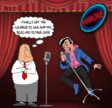 CafeBar wrote: I had a cartoon on the front of my book years ago depicting this situation. It showed a creepy-looking guy sidling in on the stage with a mike, and the singer (with a thought balloon) thinking, "I finally got up to sing, and now this loser's barging in."