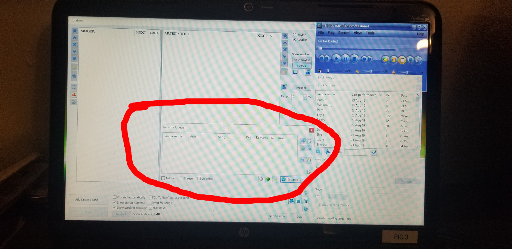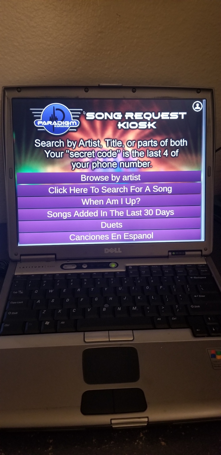 Paradigm Karaoke wrote: Danny is correct and that is exactly what i do. i load Lubuntu on all the kiosk laptops but have Windows 10 on my host computer. as long as it can go to a browser, anything will work as a kiosk. my kiosk laptops are Pentium M 1.4ghz single core with 512 ram. that i all you need for a kiosk, anything more will be overkill and wasted money (that's why i use stupid $25 laptops.) but your idea will work for sure. Attachment: 20190831_024041.jpg that is just a web page full screen. on Siglos, this is the place requests go Attachment: 20190831_024056.jpg though you can of course put it anywhere you want it to go and resize it to whatever scale fits your workflow the best. this is one of the great things with Siglos. as for router, just go through the venues router. they have wifi, all that is necessary is A router....theirs is already in place and works just fine. i DO however use Elegiant WR750A extenders that i rename "Karaoke Request" and have them as an extender to the bars wifi so people can connect automatically no matter where i am. but this is not by any means needed, just something i added. i have the kiosks in the same bag as my hosting laptop, along with all power cords and it is easy to roll. OK, that seems to be a starting point. I do see a possible issue coming into play quite often tho... with the types of shows and events I have in mind to do,, weddings, anniversaries, corporate parties, etc, there will be times that wifi will not be available to me. How do I rectify that situation?
